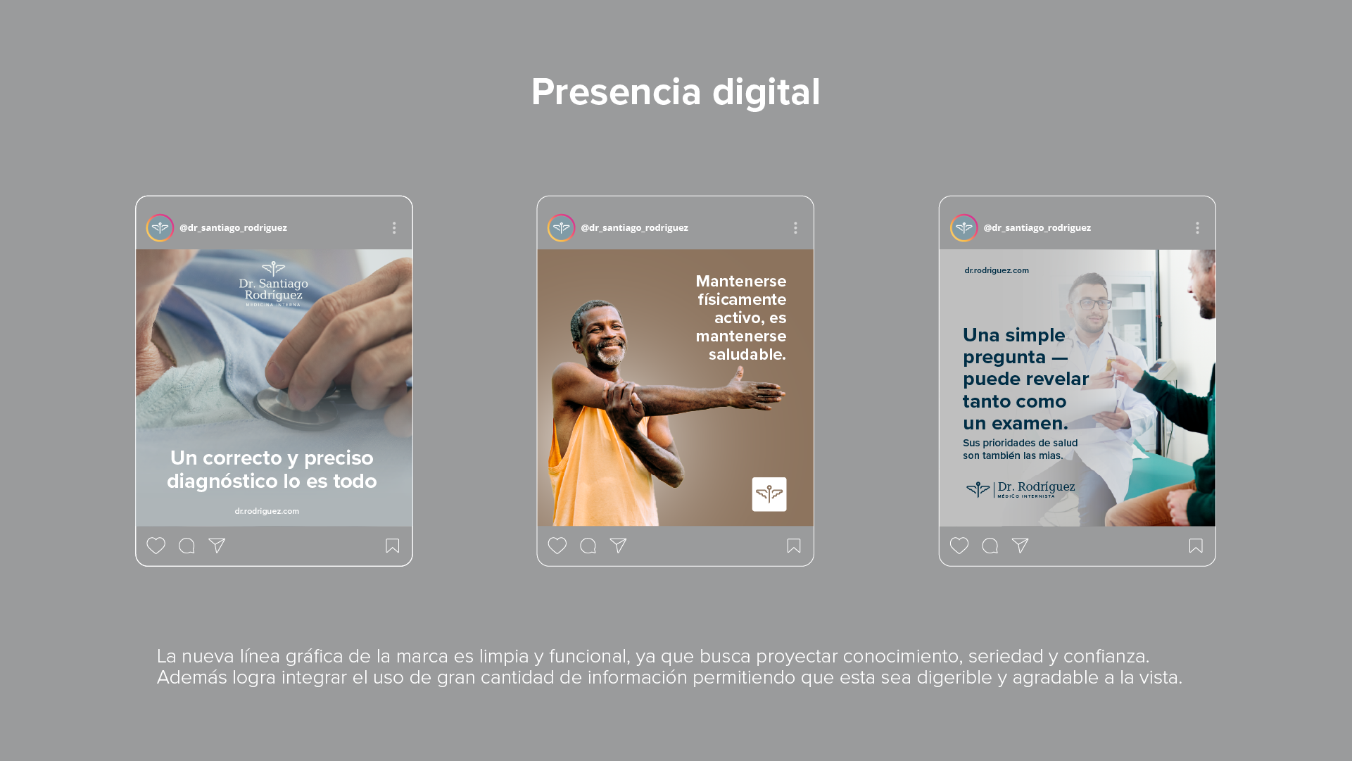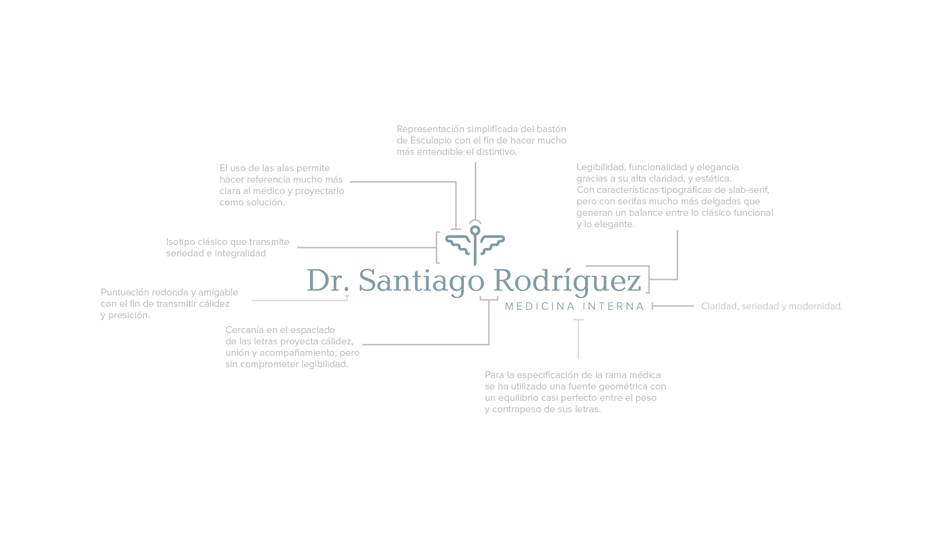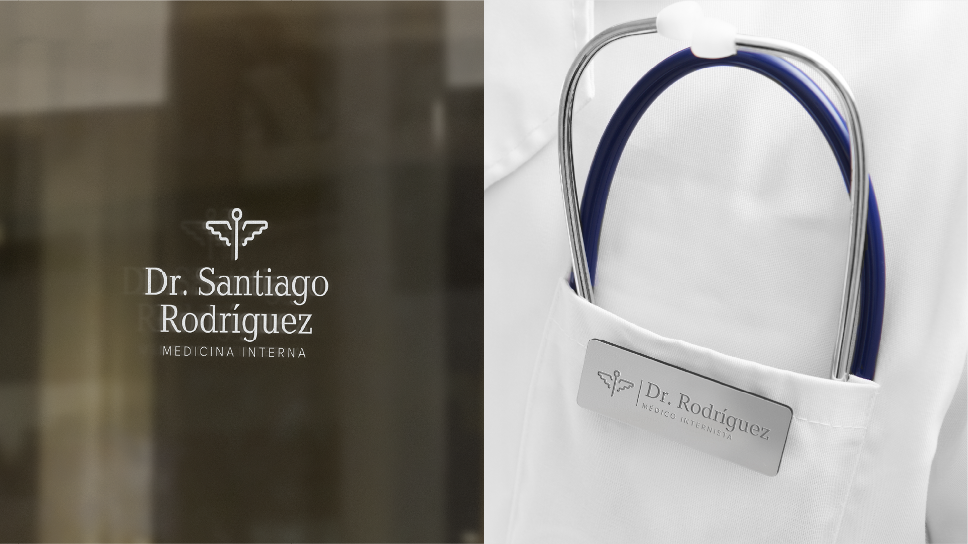 Esta fue una de las propuestas presentadas para el desarrollo de la identidad visual del Dr. Santiago Rodríguez. En esta alternativa se exploró una línea más clásica y atemporal, orientada a reforzar la trayectoria, el conocimiento y la autoridad propios de la medicina interna. La propuesta busca transmitir confianza y respaldo a través de una estética más tradicional, con un lenguaje visual sobrio y estructurado. El enfoque se centró en proyectar una imagen institucional sólida, priorizando claridad, orden y una percepción de profesionalismo que conecte desde la experiencia y la credibilidad.