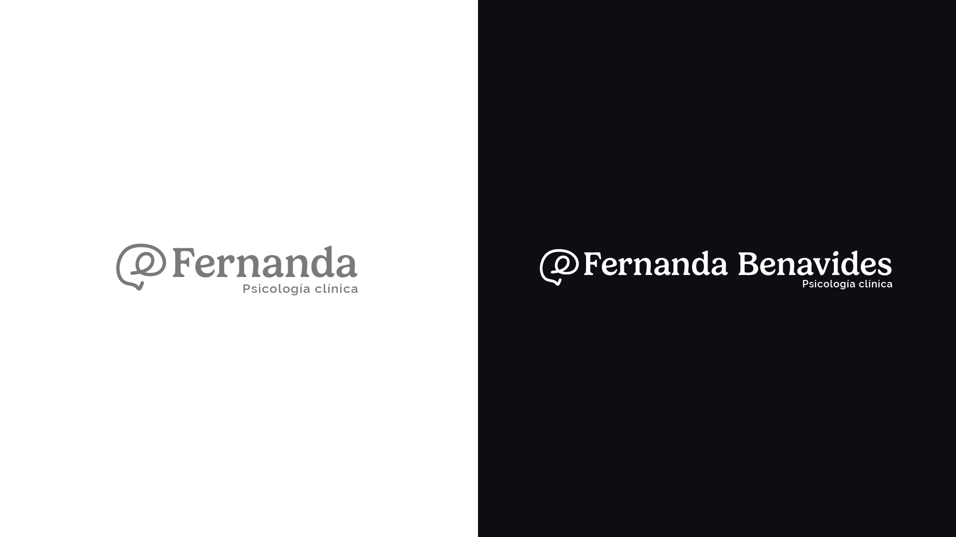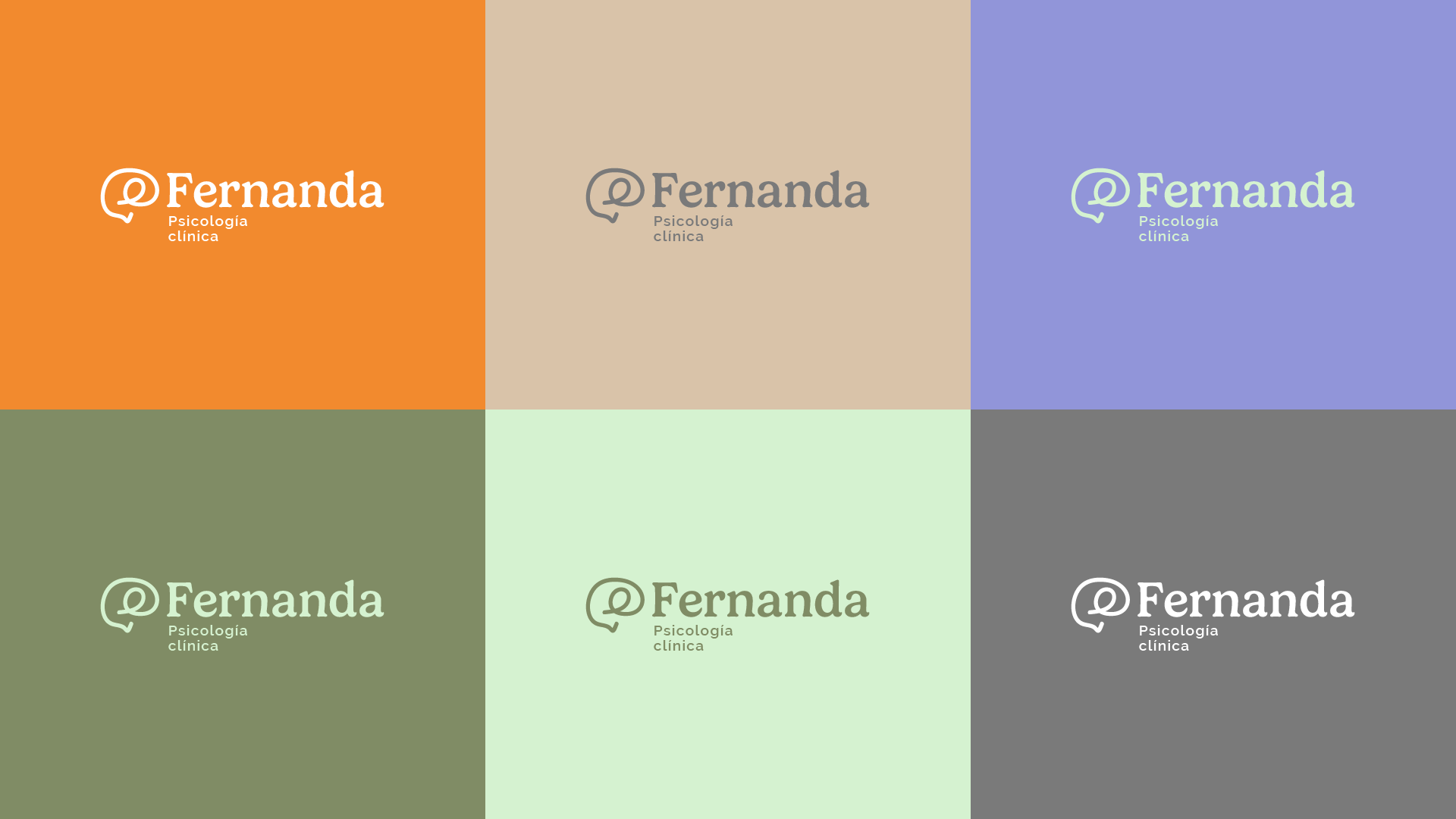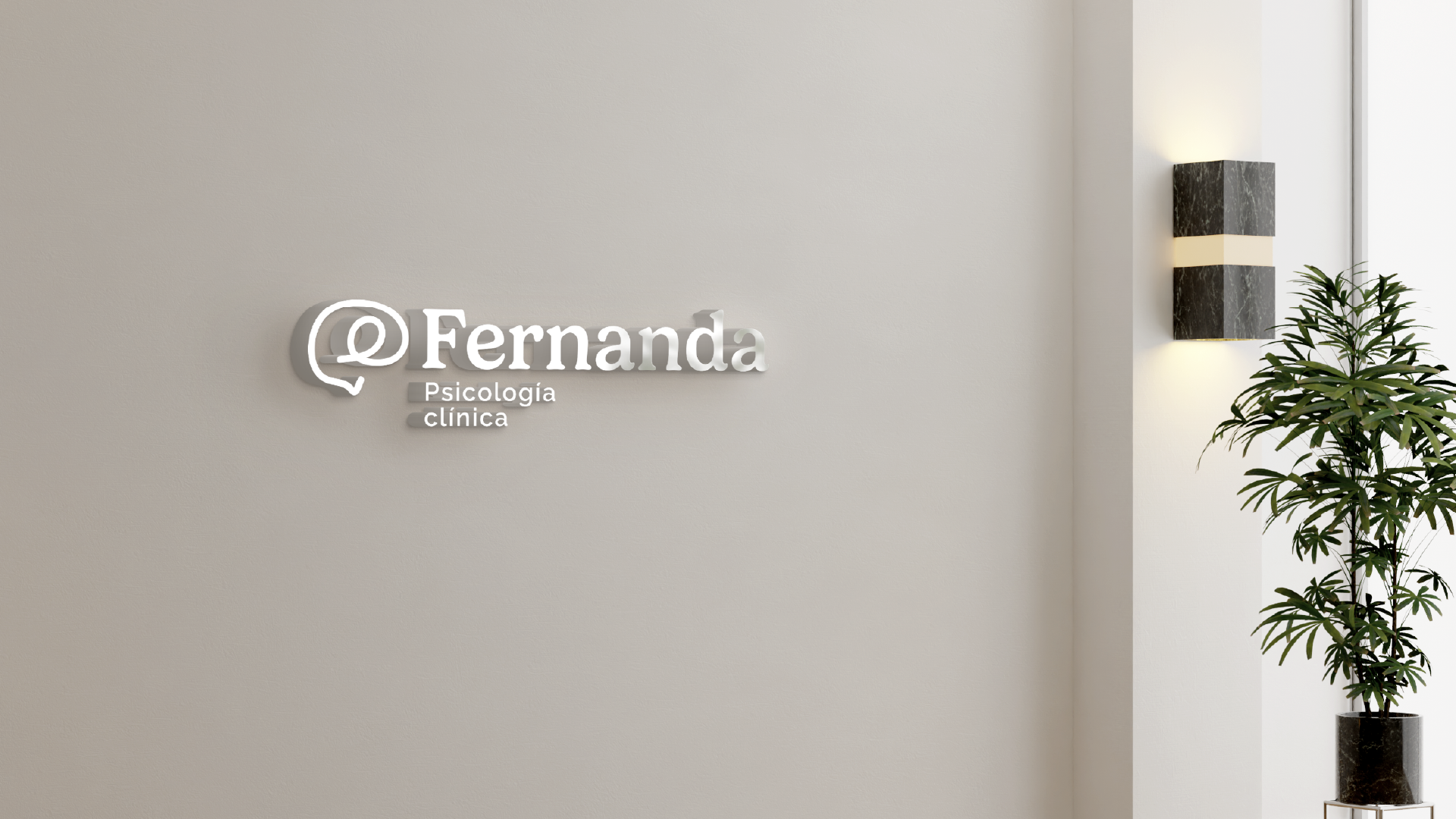 Diseño de identidad visual para psicología clínica. Creamos la identidad de Fernanda a partir de la idea de la psicología como un proceso de diálogo y construcción del pensamiento. El símbolo representa una forma en constante transformación que, a su vez, integra una burbuja de chat como referencia directa a la conversación terapéutica. La propuesta combina calidez y claridad a través de formas suaves, una tipografía cercana y el uso del nombre propio como eje de la marca, generando una conexión más humana y accesible.